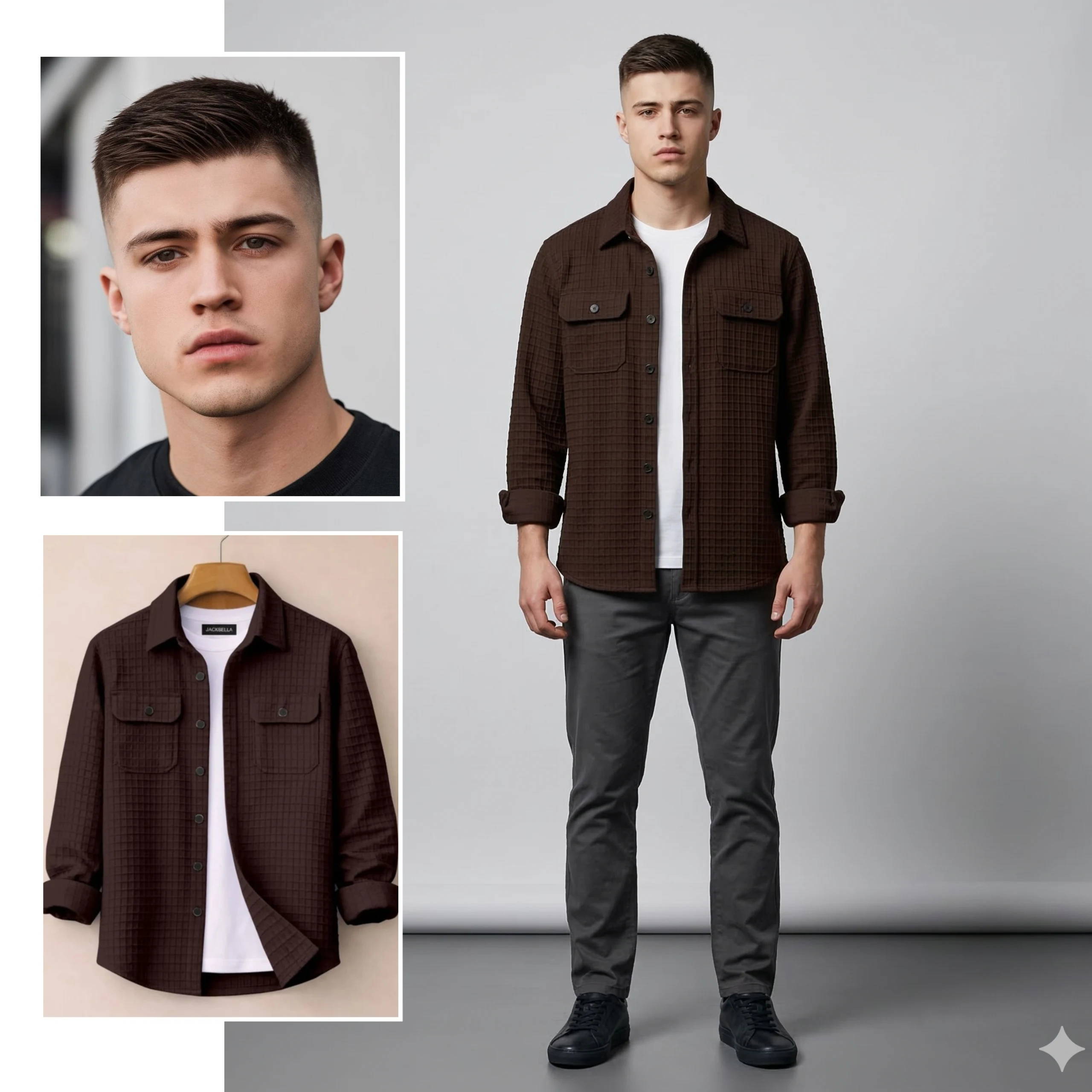 Use two uploaded reference images. One Image — Person Image Use this image only for the subject’s identity and facial details. Another Image — Outfit Image Use this image only for clothing design and outfit details. Identity Lock (Highest Priority) Strictly maintain high-fidelity facial structure and exact likeness from the person's reference image. Integrate the face naturally with the scene's lighting. Ensure realistic skin texture with visible pores and minor imperfections; absolutely avoid overly smooth AI skin or a pasted face-swap look. Facial expression: calm, confident, or warm smile with direct eye contact toward the camera. Body Proportions Maintain realistic human proportions based on the person's reference image. Preserve: body shape shoulder width natural posture Do not exaggerate body shape. Outfit Recreation The subject must wear the exact outfit from the outfit reference image. Recreate clothing accurately including: colors fabric type patterns and prints garment structure folds and stitching clothing layers The outfit should appear naturally worn and properly fitted to the subject. Pose Logic (Important) Do not copy the pose from any reference image. Instead, determine the pose based on the style of the outfit. Examples: Modern / streetwear outfits → relaxed modern fashion pose Formal outfits → confident professional standing pose Casual outfits → natural relaxed pose The pose should look like a professional fashion studio photoshoot. Composition Professional studio fashion portrait. Full body framing from head to toe (very important). Aspect ratio 2:3 vertical. Subject positioned naturally in the center of the frame. Background Create a clean professional studio sweep background. Background characteristics: smooth light grey seamless backdrop backdrop curves smoothly into the floor darker grey studio floor subtle gradient lighting on the background No objects or props. Lighting Professional studio lighting: soft front key light balanced fill light subtle rim light for separation evenly illuminated background Lighting must look natural and professional. Image Style Ultra-realistic studio photography. Requirements: photorealistic skin texture detailed fabric rendering sharp focus natural shadows professional fashion photography look Restrictions No extra people No text No logos No props No background objects No half-body portrait Subject must be fully visible from head to toe